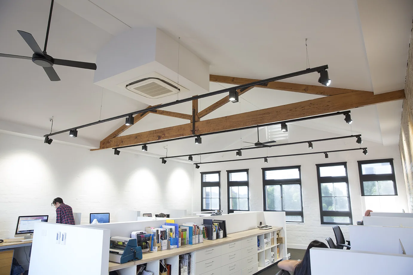 This inner-city residential warehouse had previously been renovated in the 1980s for a couple. The brief was to repurpose the building and create an inspiring, light-filled office space for a creative agency accommodating 10 to 15 people at any one time. The 3-storey building was completely gutted, with a focus on maximising communal spaces and work spaces and bringing back some of the original elements of the building including exposed ceiling beams, sandblasting some of the painted brickwork and polished concrete floors. The stairwell was completely rebuilt and industrial elements and finishes were incorporated into the design on every level.